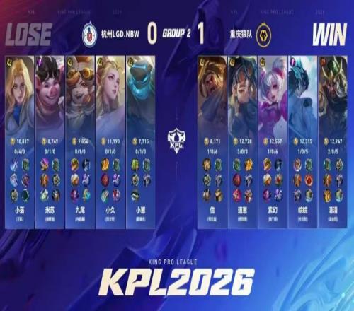 体育播报1月16日宣 2026KPL春季赛本场比赛是由重庆狼队对阵到杭州LGD.NBW!