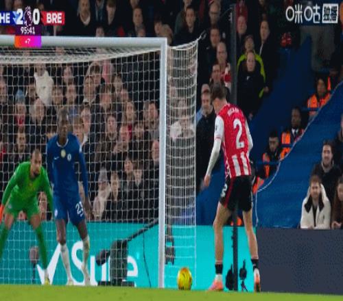 第10分钟,布伦特福德后防失误,加纳乔突入禁区,凯莱赫出击破坏