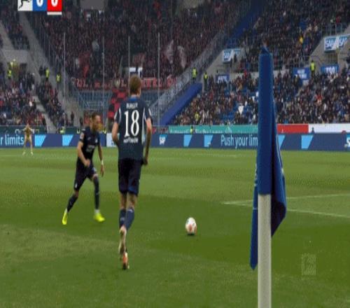 第9分钟,布格尔任意球直接破门,霍芬海姆1-0勒沃库森