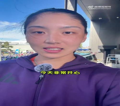 王欣瑜录制自拍视频庆祝,她说道:“大家好,我是欣瑜,今天非常开心赢得了这场比赛,也是第一次在澳网进入到第三轮,所以很期待在下一场比赛接着见到你们,谢谢。”