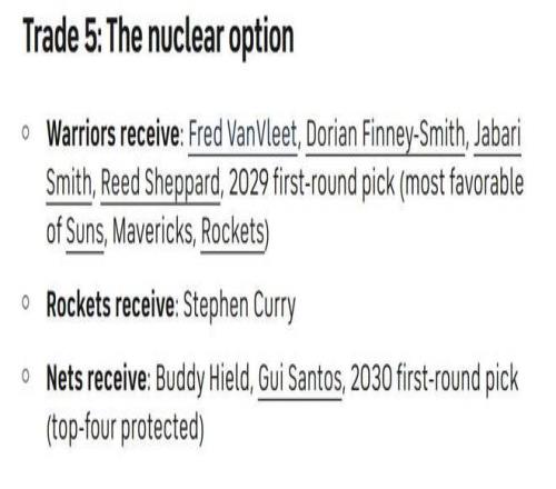 方案五:将库里送往缺少夺冠核心控卫的火箭