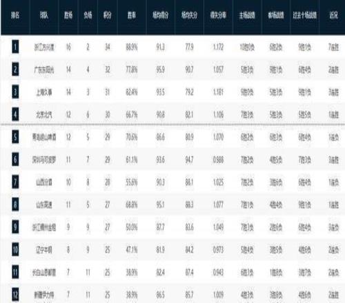 CBA积分榜最新排名!北京掀翻浙江杀回前四,昔日总冠军依旧垫底