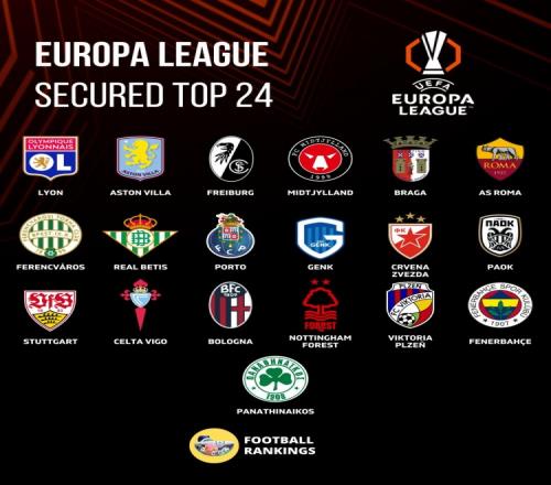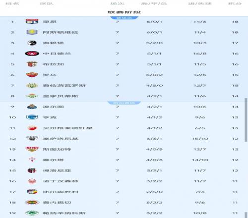 体育播报1月23日宣 欧联杯联赛阶段第7轮比赛战罢,Football Rankings列出了已经晋级16强或附加赛的球队。