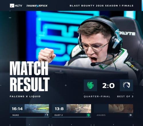 体育播报1月22日宣 CS2大赛Blast赏金赛S3来到线下赛,Falcons横扫TL,晋级半决赛!
