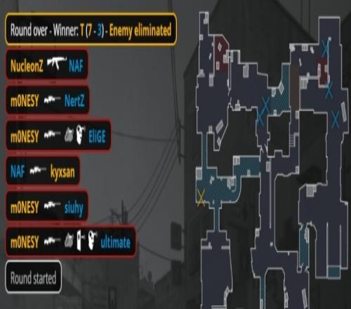 第11回合Monesy大狙再轰双杀,半场结束前NucleonZ扫转双杀收尾,Falcons以9-3结束上半场。