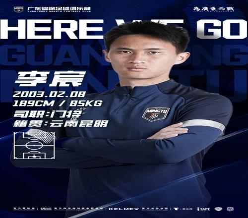 经俱乐部与球员本人友好协商并达成一致,即日起,球员李宸正式加盟广东铭途足球俱乐部一线队。