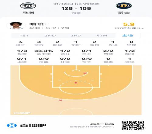 爵士首轮5号秀埃斯·贝利 登场32.3分钟