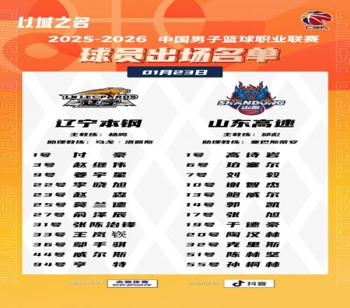 体育播报1月23日宣 今晚19:35,辽宁将在主场迎战山东,赛前大名单出炉。