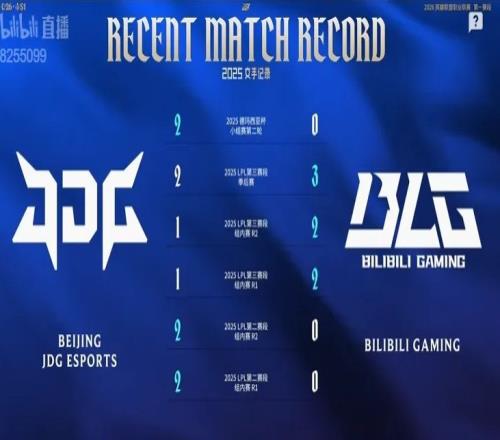 赛事官方发布BLG对阵JDG数据前瞻:2025年交手记录势均力敌